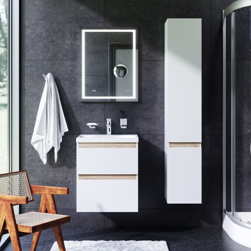 Тумба под раковину AM.PM X-Joy 55 M85AFHX0552WG. Предназначена для использования в ванных комнатах с повышенной влажностью.