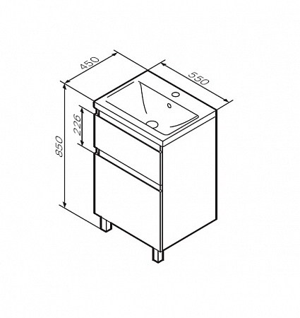 В комплекте поставки: тумба под раковину, две стальные ножки, комплект креплений.
