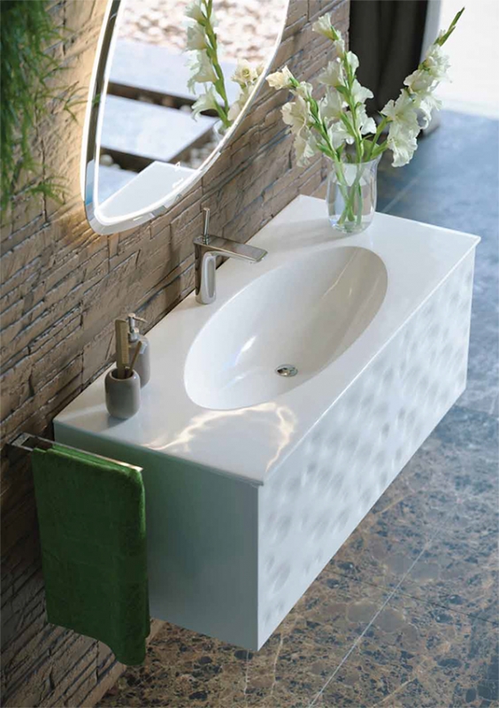Подвесная тумба под раковину Aqwella Clarberg Dune 120 DUN0112 белого цвета, с двойным выдвижным ящиком, для использования в ванных комнатах с повышенной влажностью. Эргономичность и гармония. Природные мотивы дизайна: узор песчаных дюн балтийского побережья.