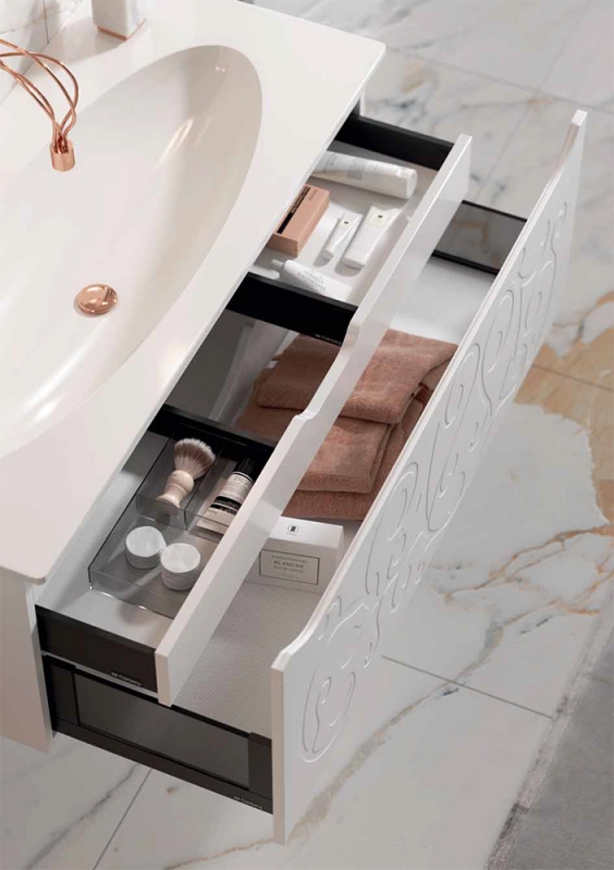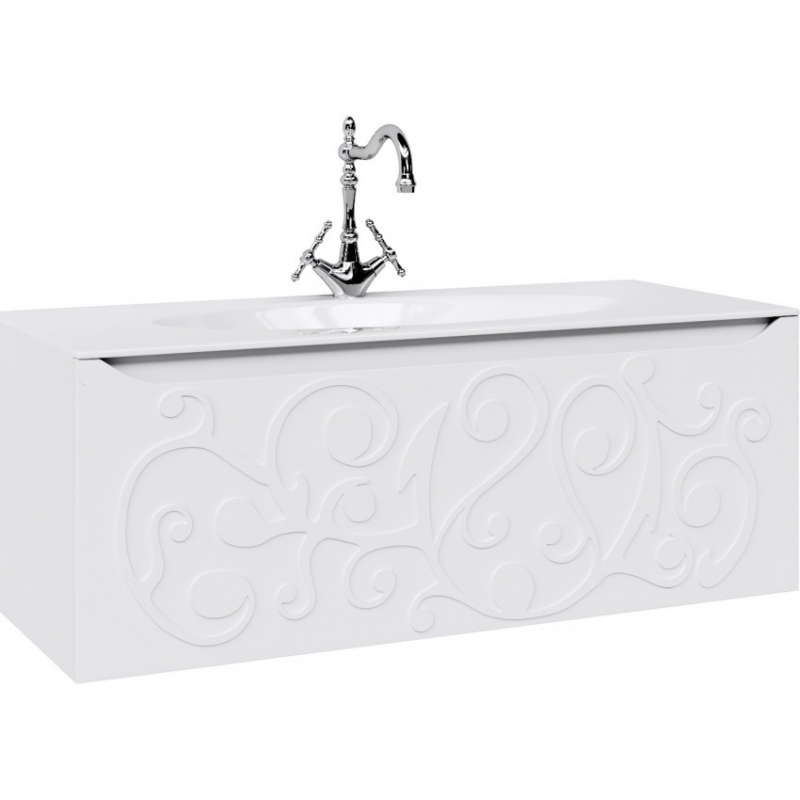 Подвесная тумба под раковину Aqwella Clarberg Elegance 120 EL0112, с двойным выдвижным ящиком, с ручкой-выемкой. Эргономичность и гармония. Изысканный и нежный тисненый узор создает романтическое настроение.