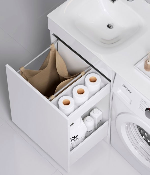 - 1 выдвижной ящик с бельевой корзиной и отсеками для хранения.