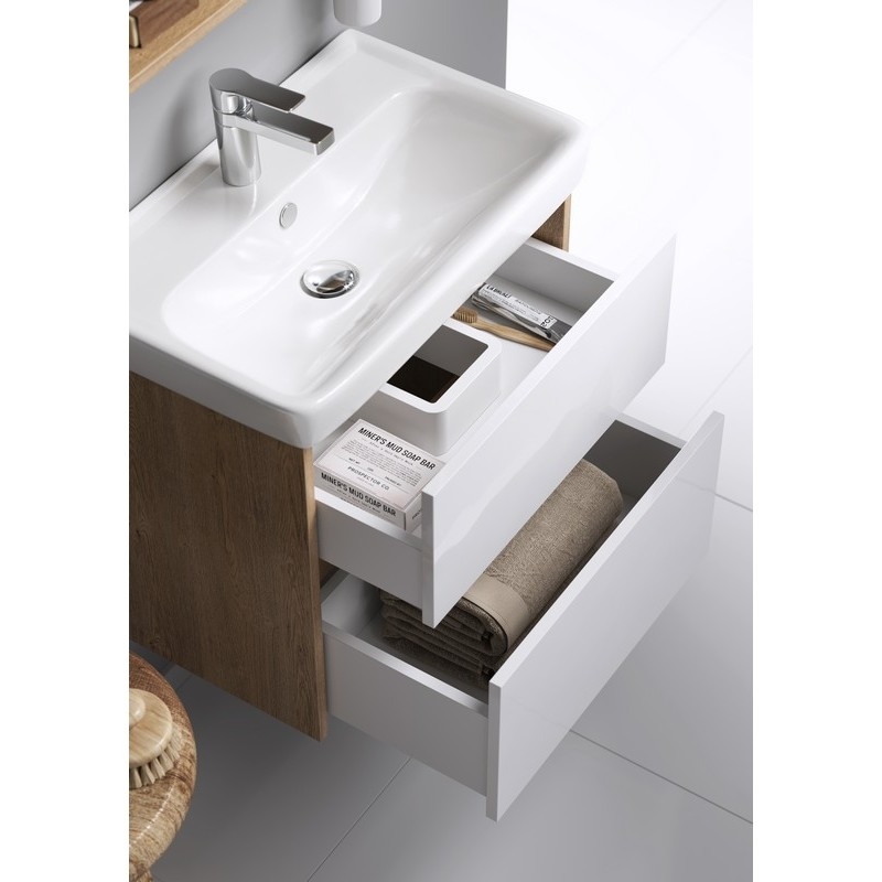 Тумба под раковину Aqwella Сити Т6м/DK 60 CI0106DK представленна в минималистическим дизайне, великолепно сочетающийся в современном интерьере ванных комнат. Тумба оборудована двумя ящиками с системой мягкого закрывания австрийской фирмы Blum.