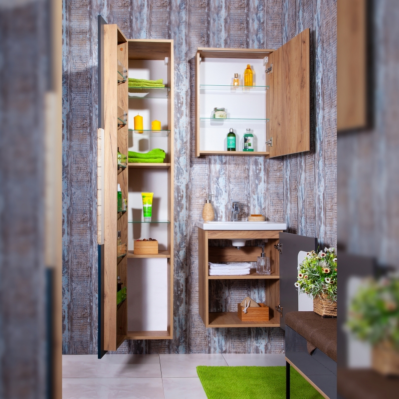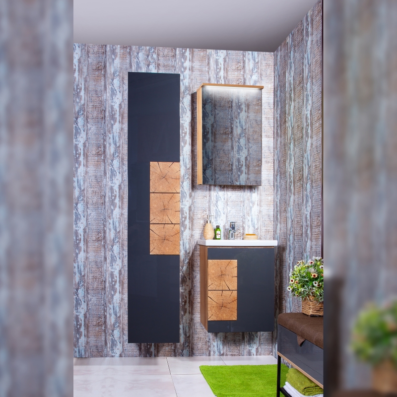 Тумба под раковину Бриклаер Форест 50 подвесная Антрацит со вставкой Пенёк