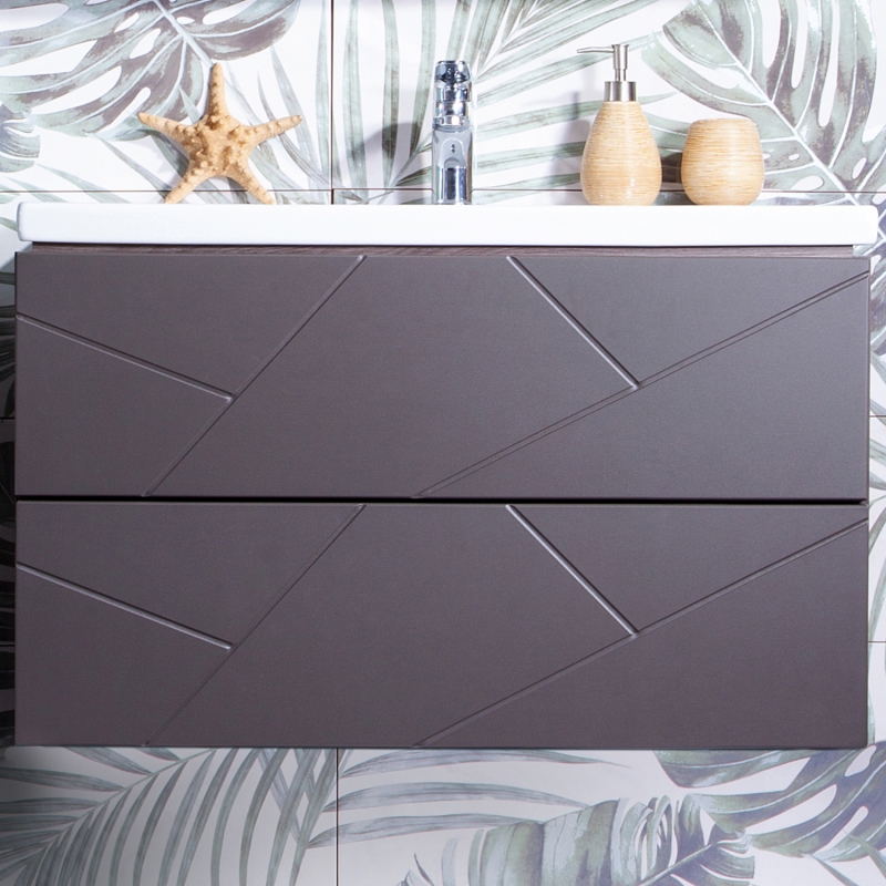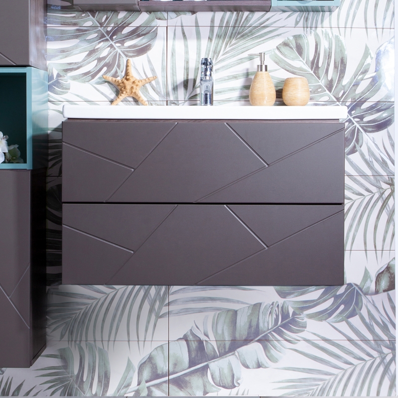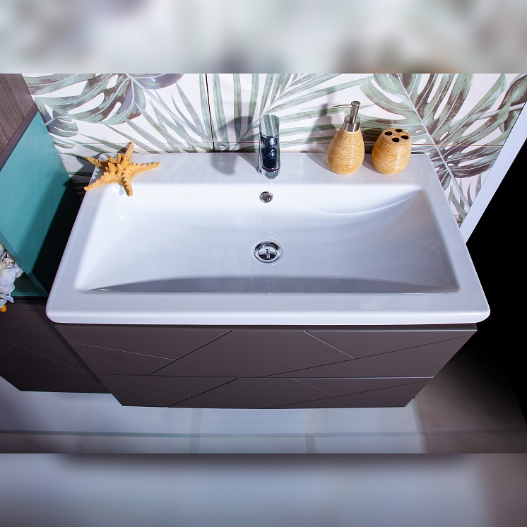 Тумба под раковину Бриклаер Кристалл 80 подвесная Ясень Анкор темный