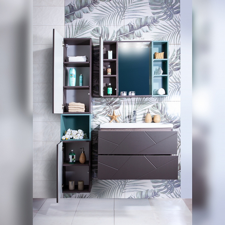 Тумба под раковину Бриклаер Кристалл 80 - это стильный предмет интерьера, очаровывающий своим современным и изысканным внешним видом. Трендовый дизайн мебели для ванной Кристалл не может оставить равнодушным даже самую изысканную натуру. Гармоничное сочетание серого и голубого цветов.