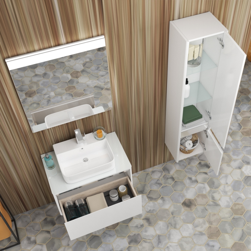 Тумба под раковину Diborg Hanna 70 77.8214 подвесная Белая матовая