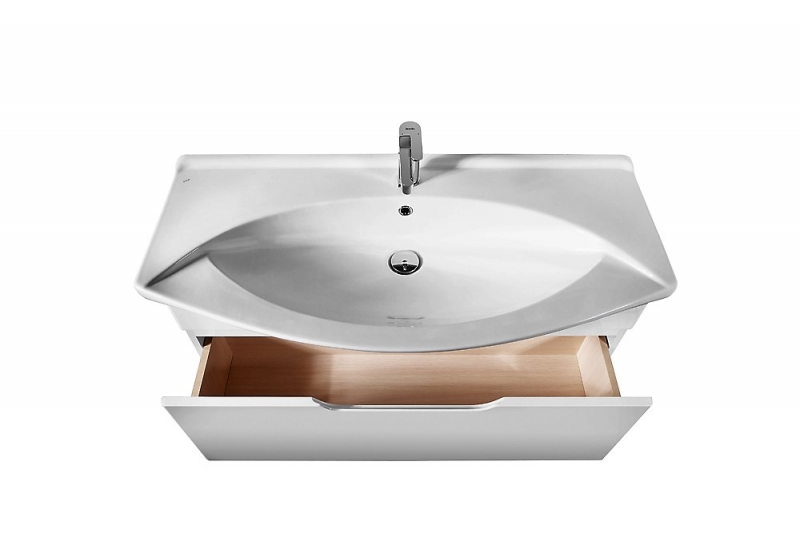 Эта коллекция с ящиками подходит не только для ванных малых размеров, но и для больших, в которых возможно разместить тумбы шириной 120 см.