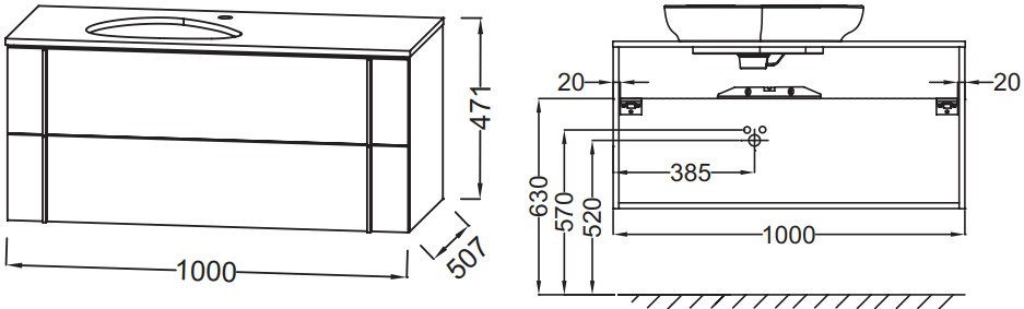 - Габариты корпуса тумбы (ШхВхГ): 100 х 47,1 х 50,7 см.