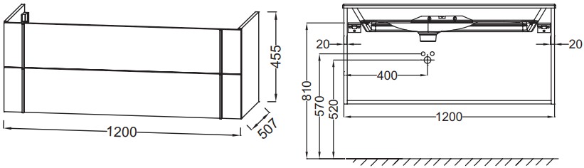 - Габариты корпуса тумбы (ШхВхГ): 120 х 45,5 х 50,7 см.