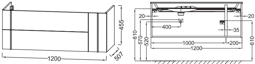 - Габариты корпуса тумбы (ШхВхГ): 120 х 45,5 х 50,7 см.