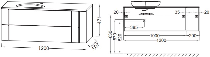 - Габариты корпуса тумбы (ШхВхГ): 120 х 47,1 х 50,7 см.