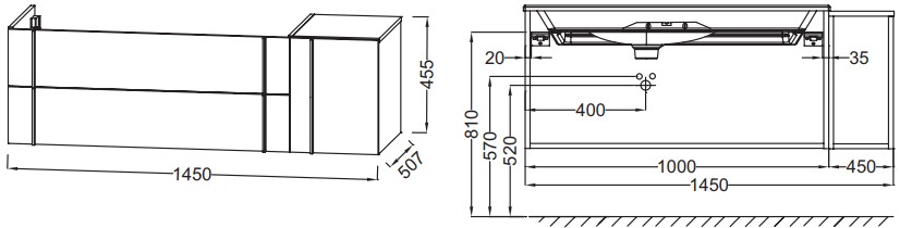 - Габариты корпуса тумбы (ШхВхГ): 145 х 45,5 х 50,7 см.