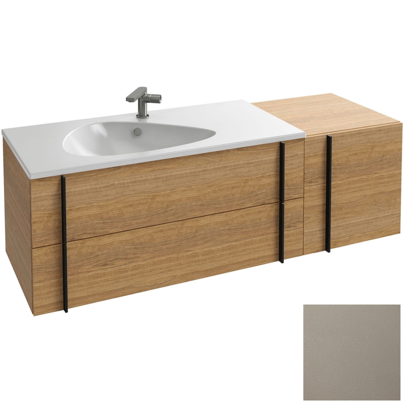 Тумба под раковину Jacob Delafon Nouvelle Vague 145 EB3037RU-NR2 с правосторонним выступом и розеткой выполнена во французском стиле 50-х годов 20 века, но в современной интерпретации. Поможет в создании ультрамодной ванной комнаты с сохранением актуальной функциональности. Предназначена для использования в условиях повышенной влажности.