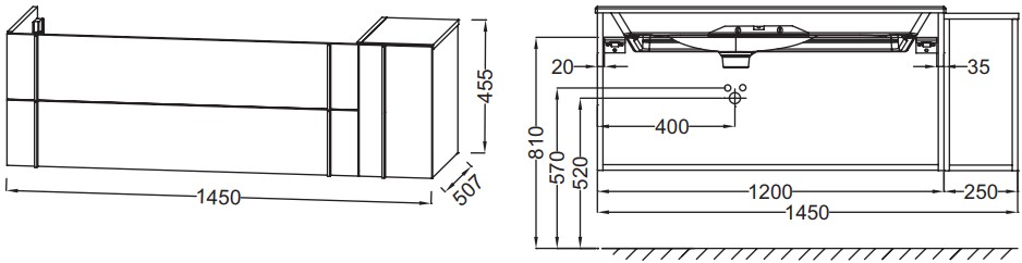 - Габариты корпуса тумбы (ШхВхГ): 145 х 45,5 х 50,7 см.