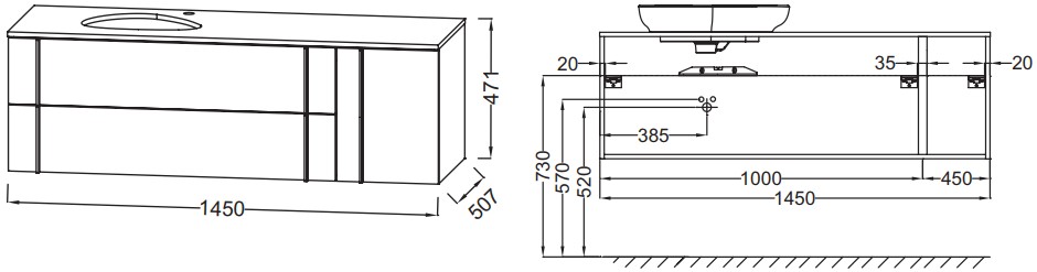 - Габариты корпуса тумбы (ШхВхГ): 145 х 47,1 х 50,7 см.
