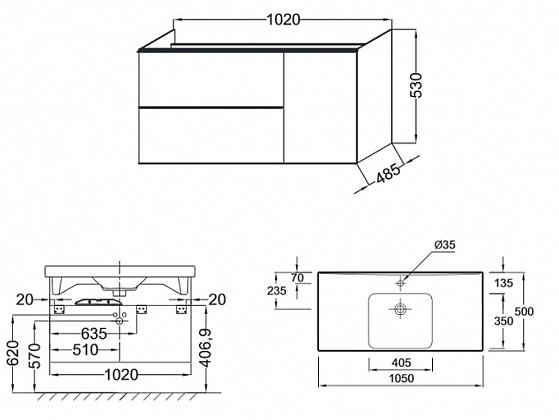- Габариты корпуса тумбы (ШхВхГ): 102 х 53 х 48,5 см.