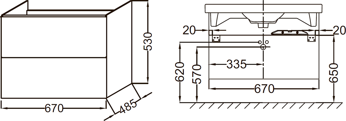 - 2 выдвижных ящика с механизмом плавного закрытия.