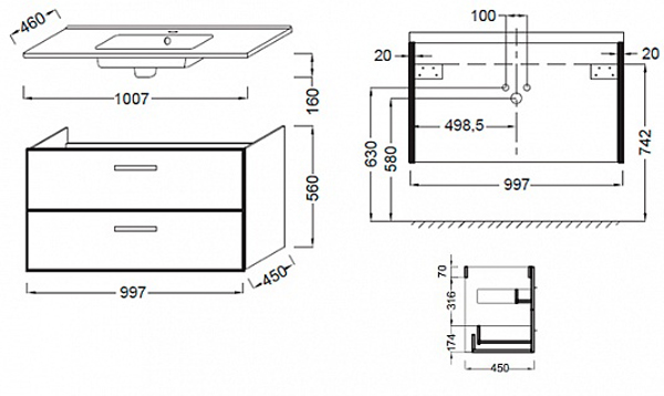 - Мягкий и плавный ход ящиков с функцией Soft Close. Ручки с покрытием цвета хром.