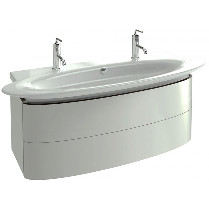 Подвесная тумба под раковину Jacob Delafon Presquile 130 EB1105-G1C с двумя ящиками выполнена в элегантном стиле с преобладанием мягких округлых линий. Она сочетает в себе лаконичность и функциональность. Мебель этой серии отлично впишется в интерьер ванной комнаты в современном дизайне.