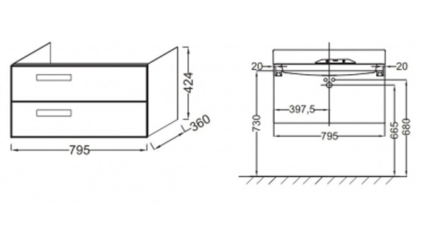 Тумба под раковину Jacob Delafon Rythmik 80x36 EB1302-E70 подвесная. Изящность в сочетании с напористостью. Резкие, прямые линии и точеные углы придадут интерьеру ванной комнаты особый шик.