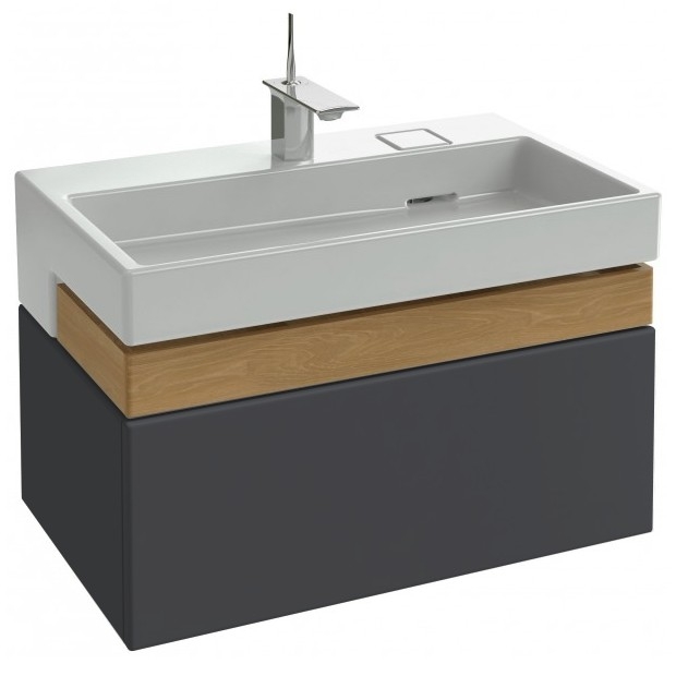 Подвесная тумба под раковину Jacob Delafon Terrace 80 EB1186-442. Утонченная, элегантная геометрия линий создает современный дизайн. Роскошная отделка из цельного дерева для внутренних ящиков и ящика для аксессуаров.