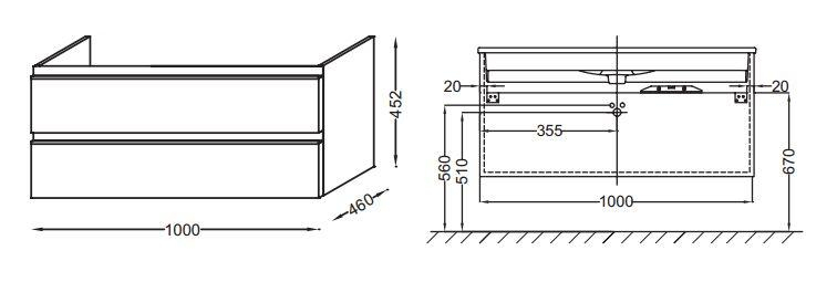 - Габариты тумбы: 100 x 45 x 46 см.