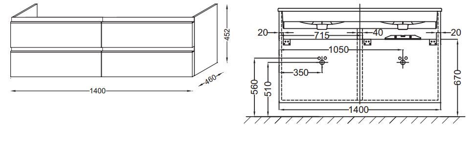 - Габариты тумбы: 140 x 45,2 x 46 см.