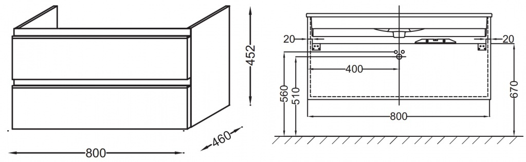 Подвесная тумба под раковину Jacob Delafon Vox 80 EB2028-RA-N18 выполнена в современном стиле и отлично дополнит интерьер любой ванной комнаты.