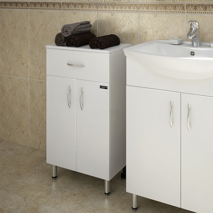 Тумба Санта Стандарт 45 из качественных материалов в современном элегантном стиле. Поможет в создании ультрамодной ванной комнаты с сохранением актуальной функциональности. Предназначена для использования в условиях повышенной влажности.