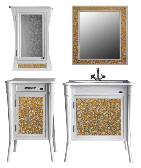 Тумба под раковину Атолл Валенсия 75 на ножках. Фасад МДФ, покраска. Базовый цвет dorato (золото). Раковина Creavit со столешницей в комплекте.