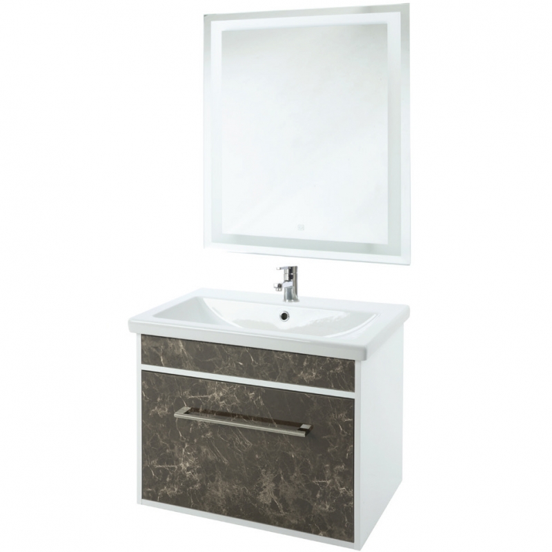 Тумба c раковиной Bellezza Фабио 60. Артикул: 4630609190329. Цвет: мрамор/белый.