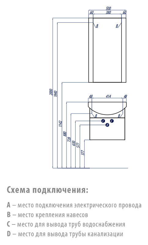 Тумба под раковину Акватон Ария 50 1A140301AA010 белая глянцевая