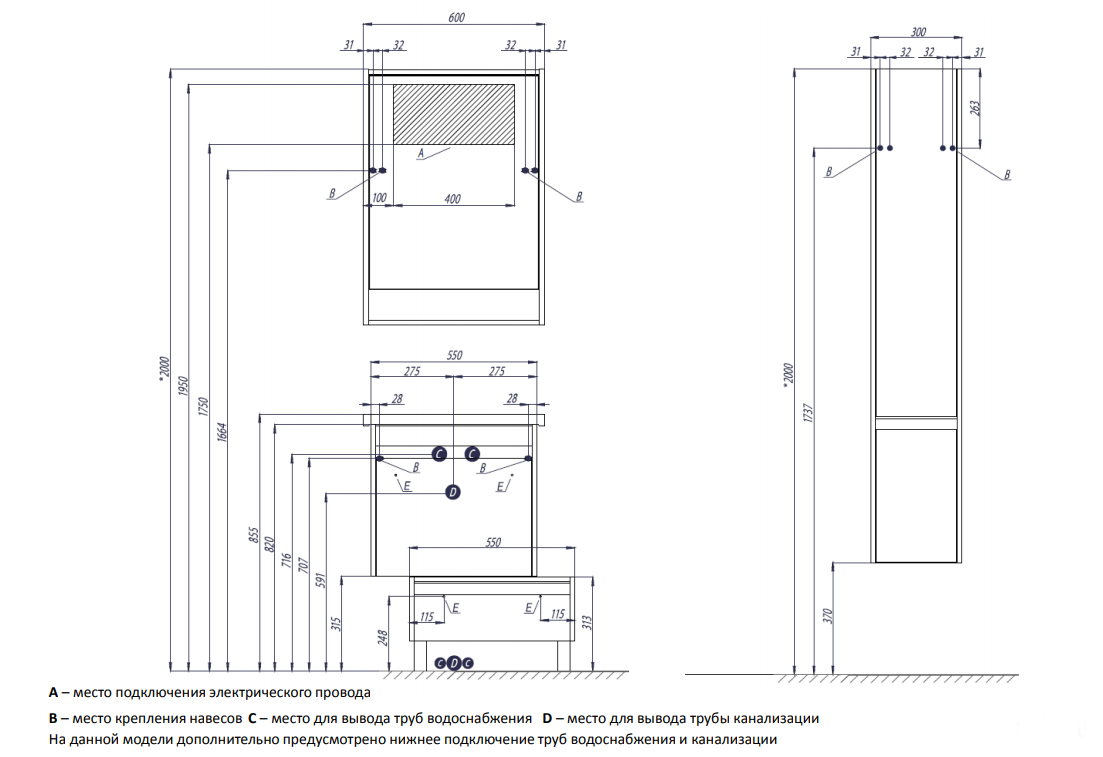 - Подвесная установка, крепления к стене.