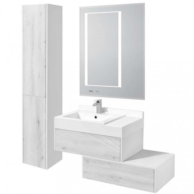 Тумба под раковину Акватон Сакура 80 1A236401SKW80 подвесная Ольха наварра Белый глянец
