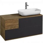 Тумба под раковину Акватон Терра 105 1A246901TEKA0. Гармоничное сочетание современного дизайна и древесной текстуры. Текстуры на тумбе расположены асимметрично: столешница, корпус и вставка на верхнем ящике - влагостойкое ДСП цвета дуб кантри, фасады ящиков - матовая серая пленка антрацит.