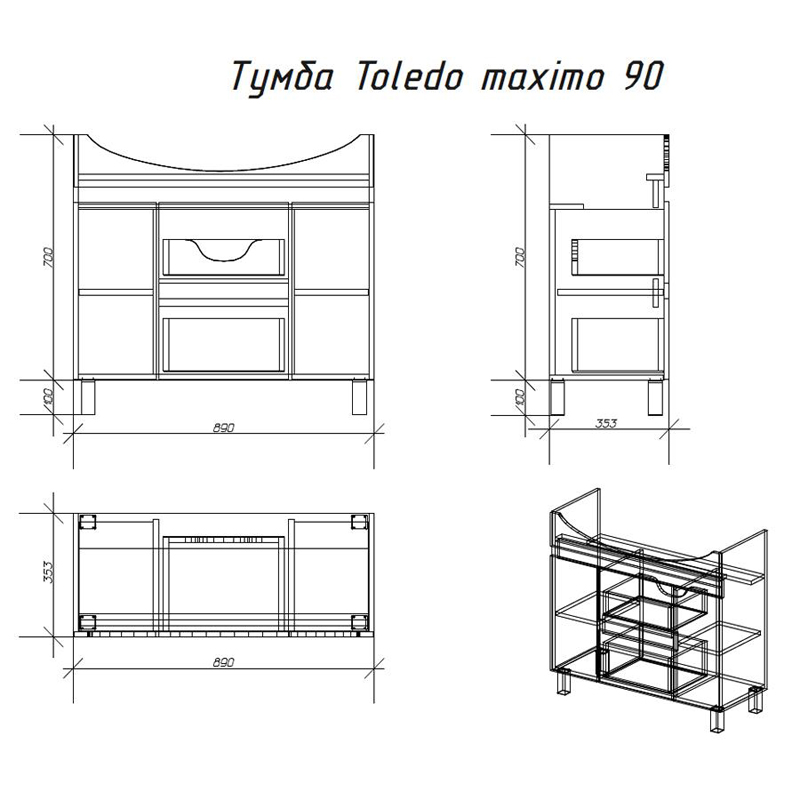 - Размеры (ШхГхВ): 89x35x80 см.