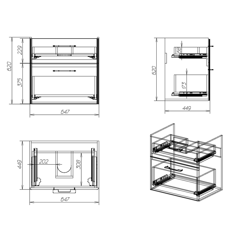 - Системы полного выдвижения и плавного Soft Close закрытия.