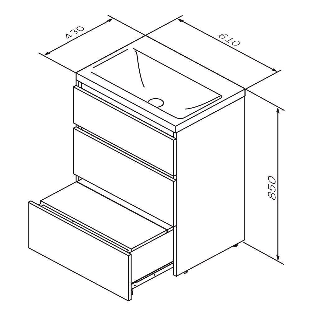 Напольная тумба под раковину AM.PM Gem S 60 M91FSX0602GM с тремя выдвижными ящиками.