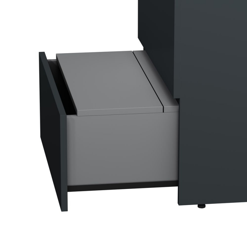 - Компактное решение: узкая база с глубокими ящиками.