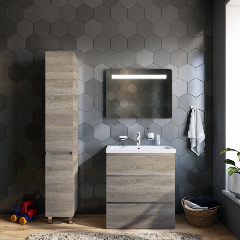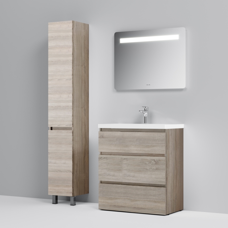 Тумба под раковину AM.PM Gem S 75 M91FSX0752OF светлый дуб, с тремя выдвижными ящиками, с двумя хромированными ножками, для длительного срока службы в ванных комнатах с повышенной влажностью.