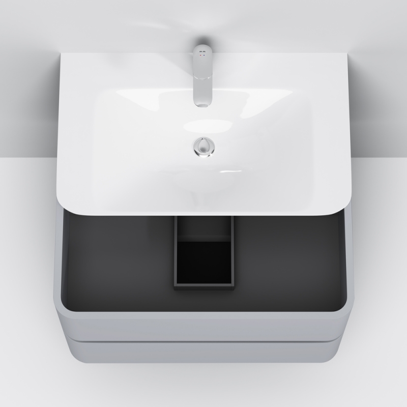 Подвесная тумба под раковину AM.PM Sensation 80 M30FHX0802FG с двумя выдвижными ящиками. Для использования в ванных комнатах с повышенной влажностью.