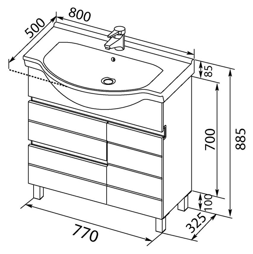 - Размеры (ШхГхВ): 77х32,5х80 см.