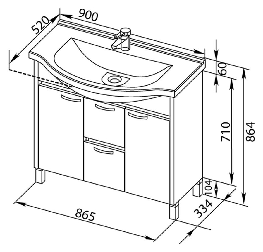 - Размеры тумбы (ШхГхВ): 86,5х33,4х81,4 см.