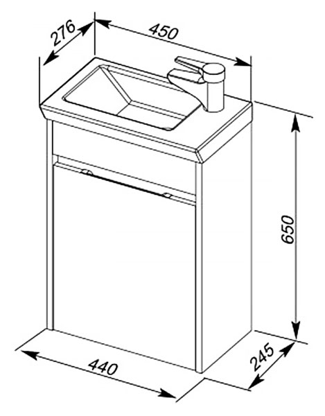 - Размеры тумбы (ШхГхВ): 44х24,5х65 см.