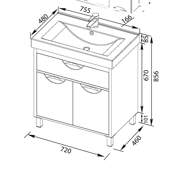 Корпус тумбы выполнен из влагостойкого ЛДСП, фасад из МДФ.