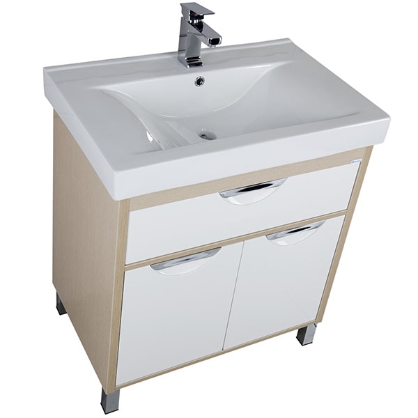 Тумба под раковину Aquanet Гретта 70 239402 выполнена в цвете светлый дуб в сочетании с белым. Устанавливает на ножки цвета хром.