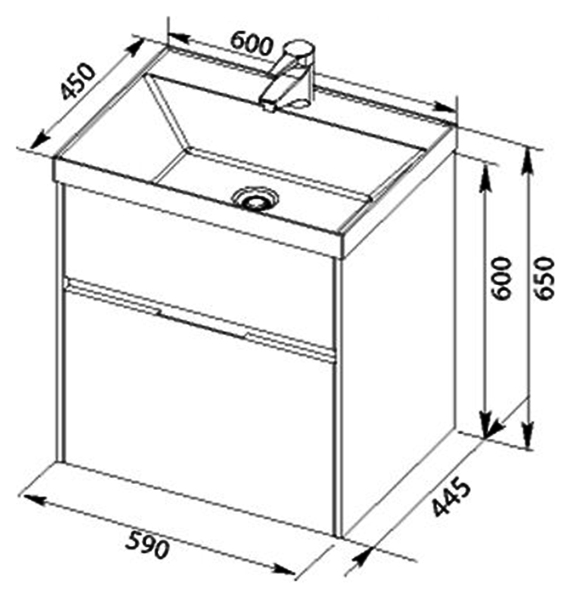 - Размеры тумбы (ШхГхВ): 59х44,5х60 см.