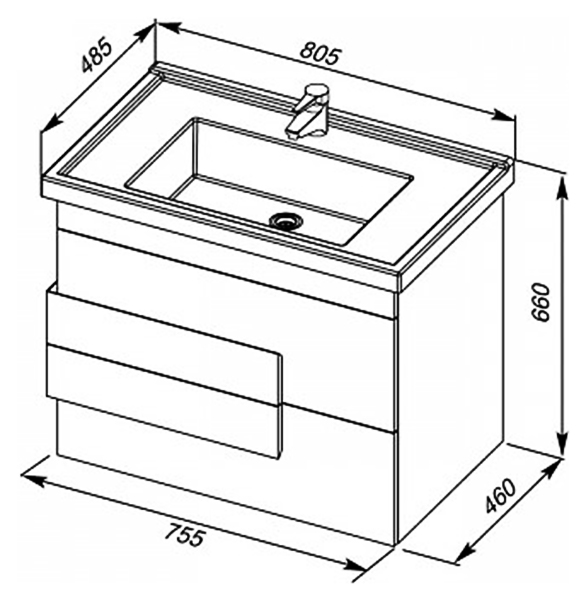 - Размеры тумбы (ШхГхВ): 75,5х46х66 см.