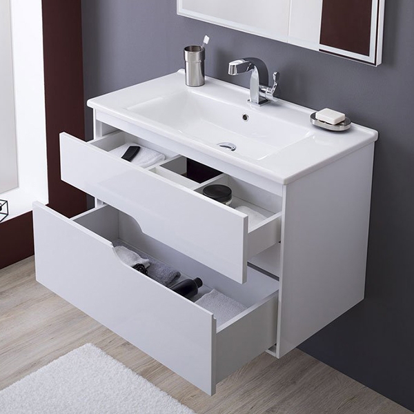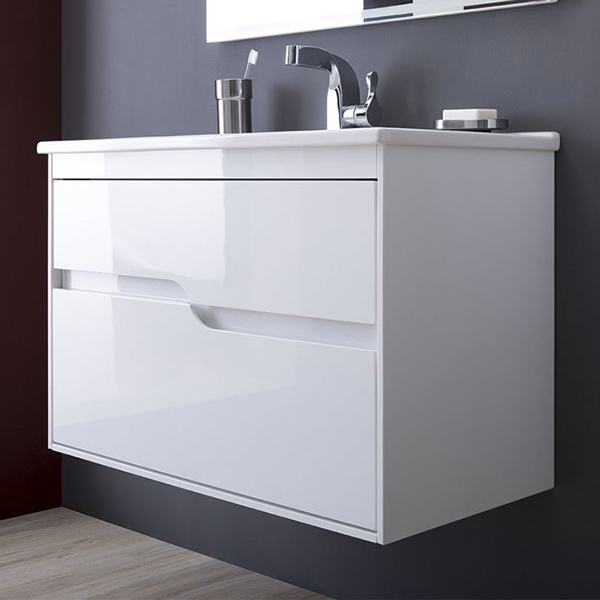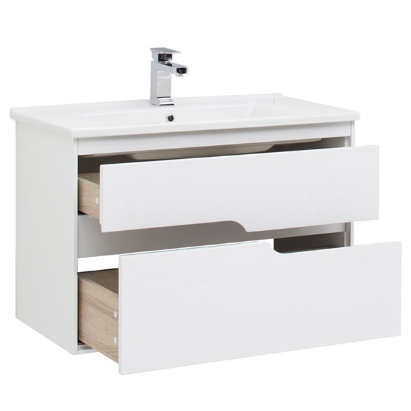 Тумба под раковину Aquanet Модена 85 196965 подвесная Белый глянец
