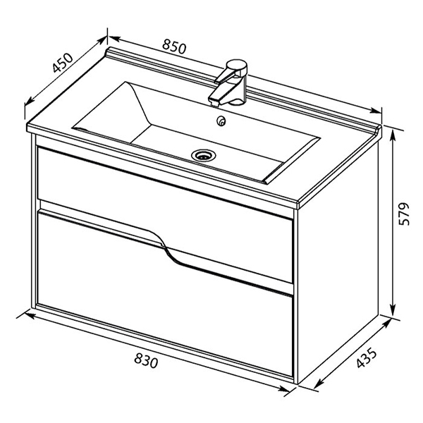Тумба под раковину Aquanet Модена 85 196965 подвесная.